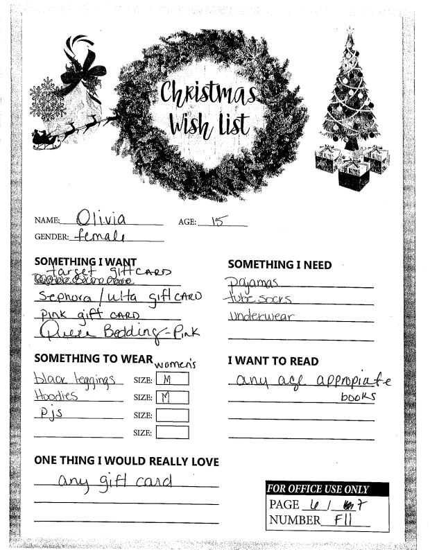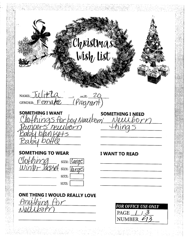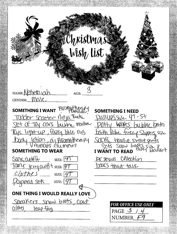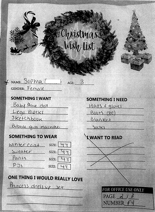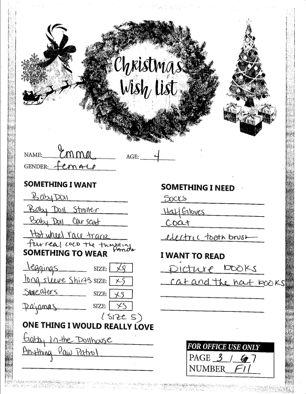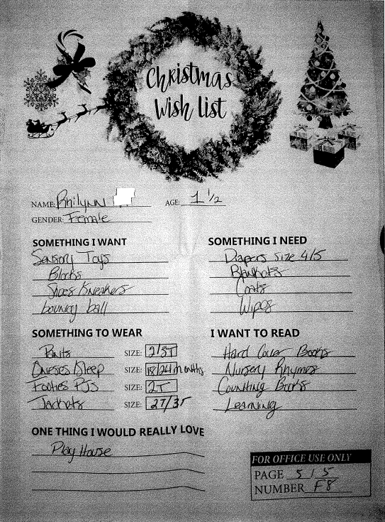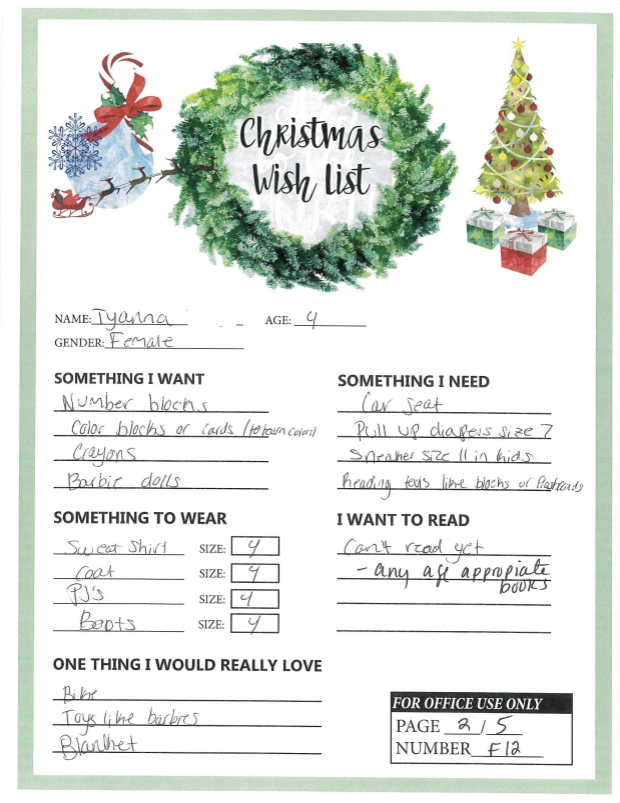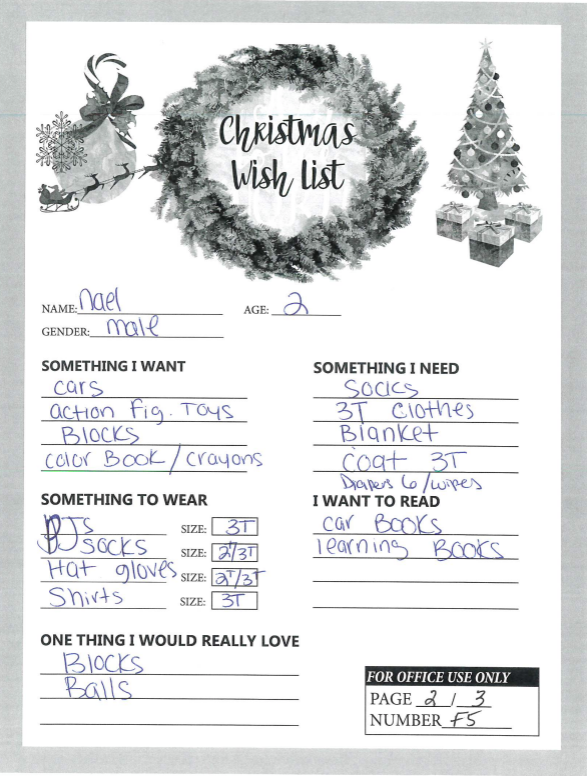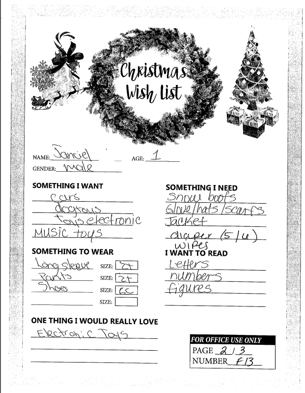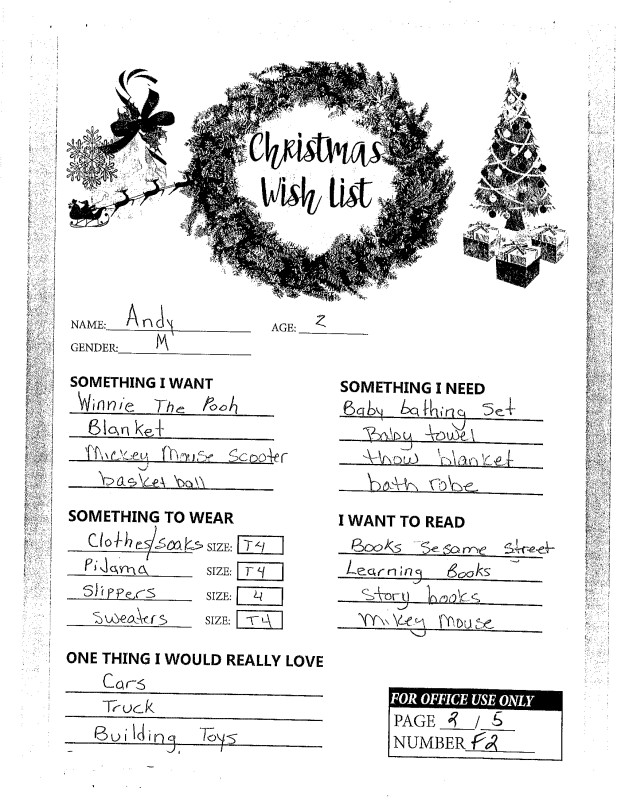 Through the Giving Tree last year, we were able to provide local families with Christmas gifts and cheer they would not otherwise have had. If you plan on making a donation to a charity this year, we ask that you consider helping out one of these families in need. You can see the members of each family, the ages of the children, and the gifts they are hoping for this holiday season.