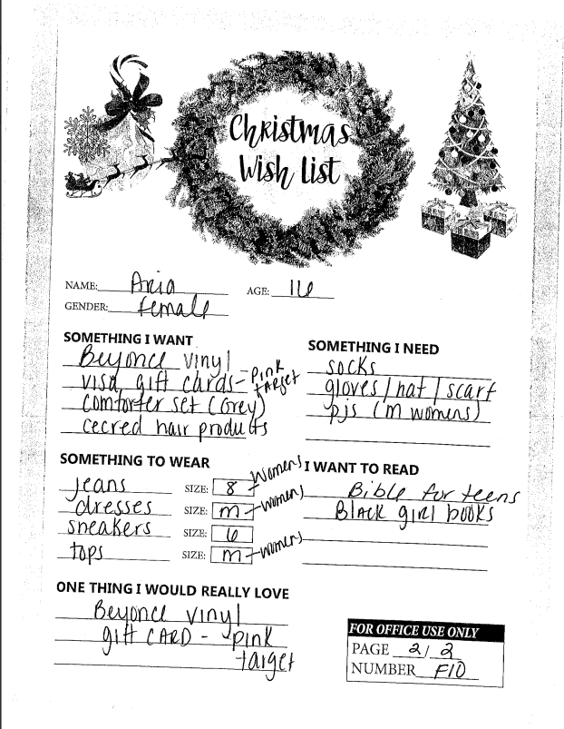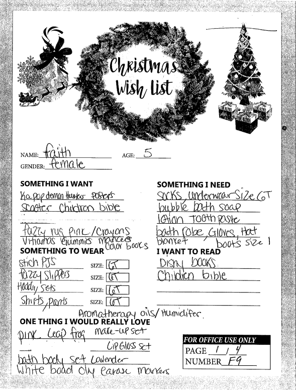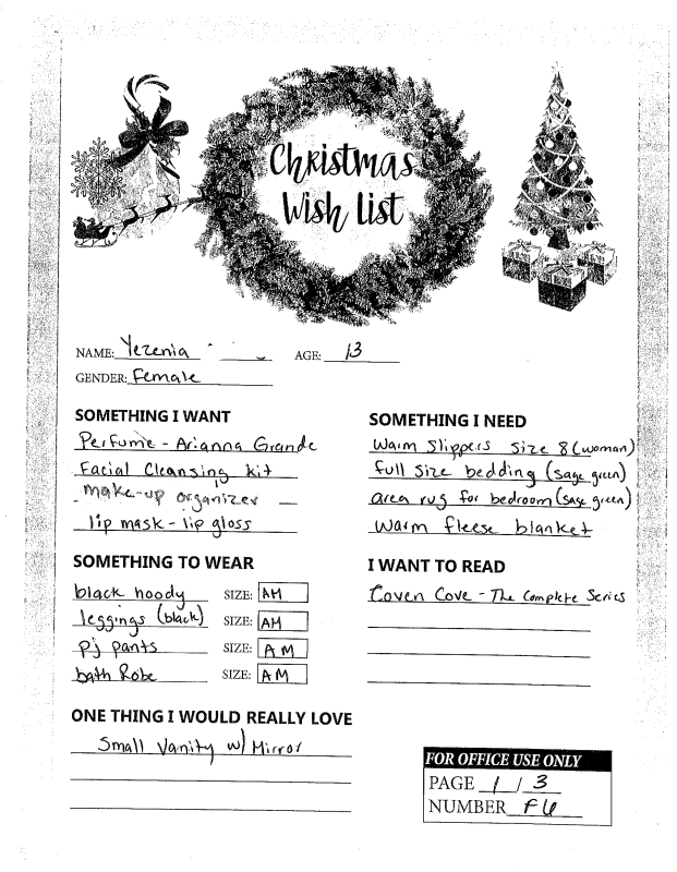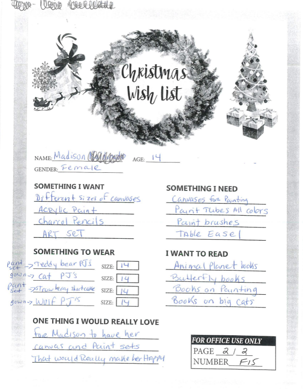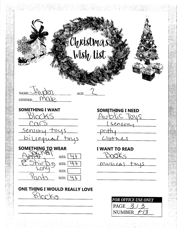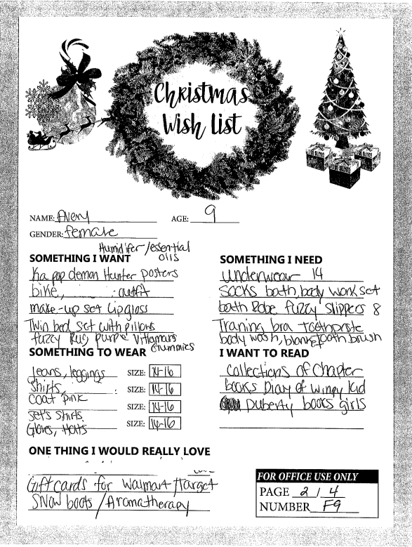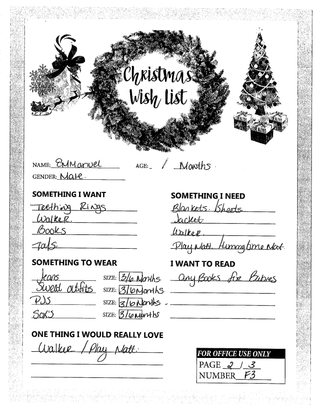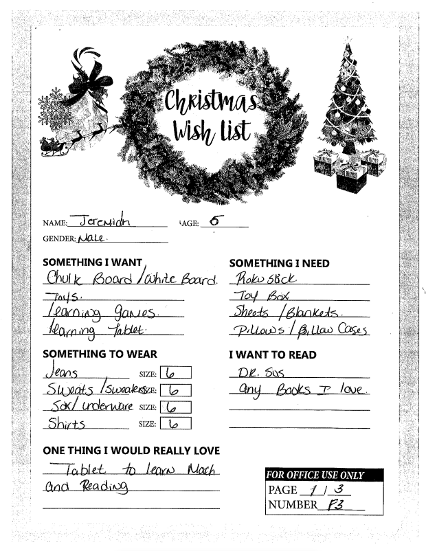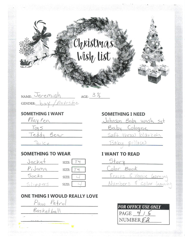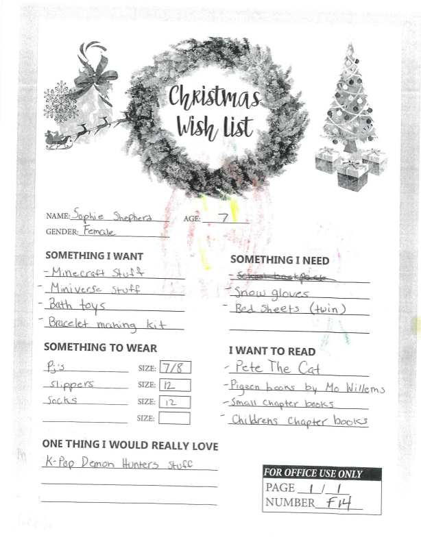 Through the Giving Tree last year, we were able to provide local families with Christmas gifts and cheer they would not otherwise have had. If you plan on making a donation to a charity this year, we ask that you consider helping out one of these families in need. You can see the members of each family, the ages of the children, and the gifts they are hoping for this holiday season.